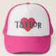 Casquette de monogramme avec TAYLOR nommé personnalisé sur le rouge avec le coeur rose