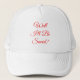 Ce casquette chrétien dit "Eh bien, je serai sauvé" dans une police rouge qui peut être changée en mots de votre propre nom. Le rouge représente le Sang du Christ.
