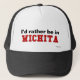 Je serais plutôt à Wichita ! Êtes-vous de Wichita, le Kansas ? Avez-vous un ami ou un membre de la famille qui aiment Wichita, le Kansas ? Si oui, ceci "je serais plutôt dans…" est le casquette ce que vous recherchez ! Les caractéristiques de conception "je serais plutôt dans" dans le petit lettrage noir le dessus et à "Wichita" dans le grand lettrage rouge au fond.
