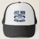 Drôle design "Just Here For The Wieners" en police bleue sans serif et illustration d'un hot dog. Ce design de hot-dog mignon et attrayant fait un grand cadeau à toute personne qui aime les viennoiseries, les fours à fourre, les saucisses et les hot-dogs.