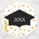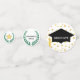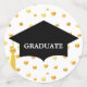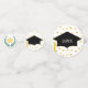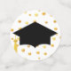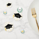 Élégante casquette de graduation, laurier, étoiles et confettis d'or sur table arrière - plan blanche Confetti. Texte prêt à être personnalisé. Idéal pour les diplômes ! Brille comme une étoile !
