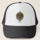 Un casquette comportant la crête de clan de chasseur dans une conception de mosaïque.