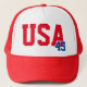 Un casquette rouge, blanc et bleu avec les mots Etats-Unis 45. Ceci a est semblable à celui qui Trump porte parfois maintenant puisqu'il est le quarante-cinquième président.
