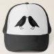 Ce casquette impressionnant a une image art numérique d'une paire de beaux corbeaux noirs se faisant face et ressemblant à des baisers. Elles sont noires avec les yeux béatifiés et les pieds et les becs gris.
