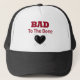 Un Coeur Noir et des os croisés avec le dicton drôle Mauvais à l'os. Disponible sur T-shirts, tasses, boutons, magnet, sweat - shirt à capuche et bien plus encore. artwork©charmantes-doodles