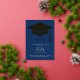 Élégante et sobre, cette faire-part de graduation est moderne et simple, mais sophistiquée, avec son arrière - plan bleu marine et son texte blanc crémeux. Le plafond de graduation et l'année sont de véritables feuilles d'or. Votre photo préférée de la grade complète le dos. Annoncez votre réussite avec classe et élégance. Créé par Simply Farmhouse Press.