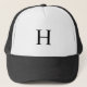 Chapeau Monogram Classic Noir & blanc Chapeau Élévé, classique et intemporel, ce simple camionneur noir et blanc qui présente une initiale monogrammée audacieuse dans un design minimaliste et traditionnel. Parfait pour les papas, les groommen, les golfeurs, les amateurs de baseball et les amateurs de sport. Personnalisez et customisez avec votre propre monogramme et couleur pour un look vraiment classique. Connectez-vous pour une consultation sur mesure. Avec un coeur reconnaissant, ANYA POWELL | HAWTHORNE RD