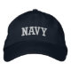 Casquette illustré en marine avec texte brodé blanc. Customisez cet objet ou achetez tel quel.