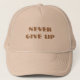 Jamais renoncer Nom de texte Khaki et Khaki couleur Trucker Chapeau ou Casquette. Vous pouvez modifier ou modifier le nom du texte.