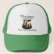 Le casquette de camionneur de Noël avec le slogan "Noël est short ainsi savor votre pudding !" avec l'image du pudding de regard délicieux de Noël décoré du houx.