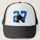 obtenez votre numéro de gardien de hockey sur un chapeau de camionneur en bleu et noir