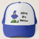 Un grand casquette pour un père ou un grand-père, oncle, etc. qui aime regarder les oiseaux...Un drôle d'oiseau bleu avec de grandes plumes et un grand bec jaune. Lames d'herbe verte sous lui. L'adage "observateur d'oiseaux officiel" peut être changé comme souhaité.