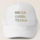 A simple, illustrative text-based design featuring the motivational quote "ONE CUP CLOSER TO CALM." The hand-drawn style typography uses a subtle black to golden-brown gradient against a light gray background, making it perfect for a minimal aesthetic on a sweatshirt, t-shirt, mug, or as a cozy, inspiring graphic for coffee and tea lovers.