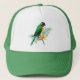 Perroquet coloré mignon et fleurs d'orange avec des feuilles verts. Modèle casquette personnalisable