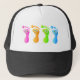 Une rangée de quatre empreintes de pas humaines colorées avec les visages heureux.