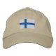 Ce casquette réglable a un drapeau brodé de la Finlande.