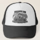 Ce casquette d'impression de géologie amusant dépeint un géologue de bande dessinée en noir et blanc, rétro, 1930-1940 style de dessin animé. Heureux M. Sun brille sur le désert avec un joyeux petit nuage et des rochers joyeux, tandis qu'un géologue heureux et chanceux se promène dans le champ avec son marteau de roche et son objectif à main ! Le texte gris sur le casquette dit : "Suivez-moi ! Je suis géologue !" Faites savoir aux gens qu'ils sont entre de bonnes mains quand vous êtes là !