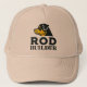 Un logotipo audaz que presenta el perfil de un Rottweiler amarillo y negro mirando hacia la izquierda, acompañado del texto "ROD BUILDER" en amarillo vibrante, utilizando una tipografía fuerte e impactante.