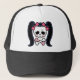 Crâne du pirate de la fille et emblème d'os croisés, avec des queues de cheval dans les arcs roses, les joues attrayantes et les un bon nombre de piratitude. La couleur, T-shirts, sue, des cartes, boutons, cadeaux.