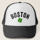Texte de Boston (Massachusetts) noir ou blanc avec un shamrock de trèfle vert à quatre feuilles. Montre ta Boston Irish Pride !