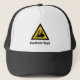 Panneau d'avertissement jaune en forme de triangle. Avertissement : Camions de levage à fourche et autres véhicules industriels. Texte personnalisé.