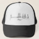 Ce chapeau de camionneur présente une silhouette d'art de ligne illustrant l'horizon de Prague.