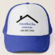 Toit de maison avec cheminée. Idéal pour votre entreprise de toiture, de nettoyage de cheminée ou de remodelage de maison - il suffit de modifier le texte existant