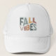 Chapeau Trucker avec Vibes Automne avec Vibes Automne en couleurs automnales et script en lettres vintages et affligées. Autres couleurs disponibles.