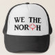 Show your Canadian pride in black text with a red maple leaf: We the North
