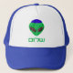 Tête étrangère verte avec de grands yeux portant une kippa de kippah/avec "Shalom" dans l'hébreu ci-dessous.