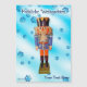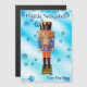 Casse-noix en bois allemand traditionnel représentant un officier de l'armée avec un uniforme bleu et orange. Le casse-noix est superposé sur une image arrière - plan bleue avec des flocons de neige. Un texte en allemand "Fröhliche Weihnachten" (Joyeux Noël) apparaît également. Ajoutez votre propre texte supplémentaire.