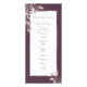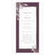Un programme de mariage floral tendance. Fleurs aquarelles en rose poussiéreux comme décoration. Modèles pour vos noms, dates, détails de la cérémonie et de la fête. Un cadre et cassis en faux argent et blanc, arrière - plan violet profond, lettres de couleur gris foncé.