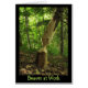 Cette carte de note capture un tronc d'arbre qui a été presque totalement rongé par des castors. L'arbre est sur une banque plutôt raide de crique et est mâché à l'angle parfait pour rouler vers le bas dans l'eau. Quels animaux incroyables ils sont ! Principalement nocturnes, ces grands, semi-aquatiques rongeurs sont célèbres pour les barrages, les canaux, et les loges de construction (maisons). Ils sont le deuxième plus grand rongeur dans le monde. Leurs colonies créent un ou plusieurs barrages pour fournir toujours, eau profonde à la nourriture de flotteur et matériau de construction. L'eau agit également en tant que protection contre des prédateurs. Le texte lit : Castor au travail. Il peut être customisé ou supprimé.