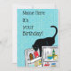 C'est ton anniversaire ! Allez-y, faites comme si c'était le premier de vos neuf vies. Un méchant chat noir fait ouvrir le frigo va pour le rêve, je veux dire la crème. Carrelage turquoise et contenu de réfrigérateur détaillé ajoutent au charme et à l'humour de cette carte. Vos amis amoureux de les chats obtiendront absolument l'humour.