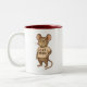 Cette tasse à café classique à deux tons présente une adorable illustration sépia vintage d'une souris portant un t-shirt qui dit "Cat Mom" Un cadeau parfait pour les mamans de vrais chats ou juste les fans de jolies illustrations et d'humour ironique