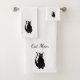 Jolie serviette de bain en caricature de chat noir avec un croquis dessiné à la main kitty winking et design typographique script. Avec le lettrage noir, vous pouvez ajouter votre propre texte. Un produit de bain amusant pour quand votre salle de bain décor maison.