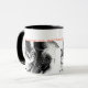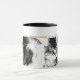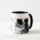 Une tasse blanche avec une jante et une poignée noires et une photo en gros plan en noir et blanc d'un chat mi-birman attentif. En rouge, juste en dessous du bord se trouvent les mots, 'vous regardant me regardant vous...' Matching mousepad et sac fourre - tout également disponible.