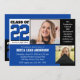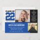 Classe de 22 invitation de graduation d'inspiration bleue, blanche et noire avec deux photos et un message spécial. Modifiez les couleurs et le texte selon vos préférences.