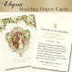 Avec une belle image catholique traditionnelle de l'image du betrotal de Marie et Joseph avec une bordure en or décorative agrémentée de fleurs blanches, et un arrière - plan en dentelle blanche. Une prière est à l'arrière pour la mariée et le marié. Tout le texte et les polices peuvent être modifiés.