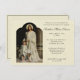 Avec l'invitation traditionnelle de la première communion catholique avec Jésus debout à côté d'un jeune enfant avec l'Eucharistie superposée. Sur le dos est une citation d'écriture avec une image en noir et blanc de l'Hôte, Chalice, & blé représentant le Pain de Vie, Jésus. L'arrière - plan des deux côtés est un design de dentelle ecru très léger. Les polices, les textes et les images peuvent être modifiés. La Douche des Roses Shoppe offre également la coordination des Cartes du Souvenir.