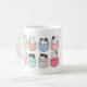 A playful white mug featuring adorable cartoon cats sitting inside colorful pockets with fun patterns, plus extra cat paws and faces around the design. Perfect for cat lovers to enjoy their favorite hot drinks while adding a touch of whimsy to the kitchen or office. Durable, stylish, and makes a thoughtful gift for friends and family.