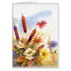 aquarelle des cattails soufflant dans le vent au milieu de quelques fleurs sauvages