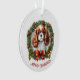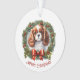 Mignon ornement de Noël avec adorable Blenheim Cavalier le roi Charles chiot spaniel dans une couronne de Noël. Personnalisez facilement le texte ou laissez-le vide - Kate Eden Art