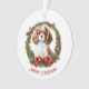 Mignons ornement de Noël avec le chiot blanc Cavalier du roi Charles Charles dans une couronne de Noël. Personnalisez facilement le texte ou laissez-le vide - Kate Eden Art