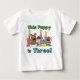 Conception de chiot T-shirts 3e anniversaire, costumes, magnets, cartes, sacs fourre-tout, boutons 3e anniversaire, et plus avec bougies d'anniversaire, un adorable chiot brun, un casquette de fête, et beaucoup de gâteries d'anniversaire! Texte : "Ce chiot a 3 ans !".
