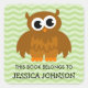 Ce livre appartient à des autocollants étiquettes à plaques de hibou brun. Design animal forestier mignon pour les élèves de primaire et de primaire. Arrière - plan motif de zig vert chevron. Fournitures scolaires personnalisées avec le nom personnalisé de l'enfant. forme carré ou ronde.