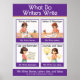 Aidez les jeunes apprenants à explorer les nombreux types d'écriture avec ce tableau d'ancrage engageant « Qu'est-ce que les écrivains écrivent ». Conçu pour les classes de maternelle, de première et de deuxième année, ce guide visuel présente aux élèves différentes formes d'écriture, notamment des histoires, des lettres, des listes et des idées personnelles. Avec un langage simple et cohérent et des illustrations en aquarelle, ce tableau rend les concepts d'écriture faciles à comprendre. Les élèves apprendront que l'écriture peut être créative, pratique et significative, ce qui les aidera à renforcer leur confiance en développant leurs compétences. Ce tableau est parfait pour les mini-leçons d'écriture, les discussions en classe et la référence quotidienne pendant le temps d'écriture.