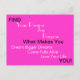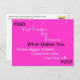 Le design "What Makes You" d'Illustrator April McCallum présente un texte inspirant en noir et blanc sur une carte postale rose chaud. Texte : "Trouvez Votre Passion, Votre Joie, Votre But... Ce Qui Vous Fait Rêver De Plus Grands Rêves, Venez Pleinement Vivants, Aimez Votre Vie... VOUS !"