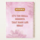Imaginez ceci : vous avez une journée difficile, les délais s'empilent, et vous voyez votre planificateur. BAM ! La voici en rose - "Ce sont les petits moments qui rendent la vie formidable." Soudain, vous vous rappelez cette super tasse de café que vous avez mangée ce matin ou ce drôle de texte de votre bestie. Comme ça, votre journée devient un peu plus brillante. Le design rose pâle avec des fleurs mignonnes n'est pas seulement joli à regarder (mais il l'est totalement). C'est comme un câlin pour vos yeux chaque fois que vous le voyez. Et soyons réels, nous pourrions tous en utiliser plus, n'est-ce pas ? Prenez-en un pour vous-même ou offrez-le à quelqu'un qui pourrait utiliser une dose quotidienne de positivité.