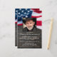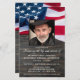 USA American Flag Memorial Funeral Celebration Of Life Invitation. Cette célébration patriotique de l'invitation à la vie présente un drapeau des Etats-Unis d'Amérique sur un arrière - plan en bois foncé. Personnalisez cette fête du drapeau américain de l'invitation de la vie avec vos proches photo, nom / rang & dates, lieu de l'événement, et toute information supplémentaire sur le dos. Cette invitation funéraire photo American Flag sera un souvenir précieux. Parfait pour les funérailles militaires, le service commémoratif vétéran ou la célébration militaire de la vie. In Loving Memory Military Memorial drapeau américain. DROIT D'AUTEUR © 2020 Judy Burrows, Black Dog Art - Tous droits réservés. Célébration Budgétaire De La Vie Invitation Militaire